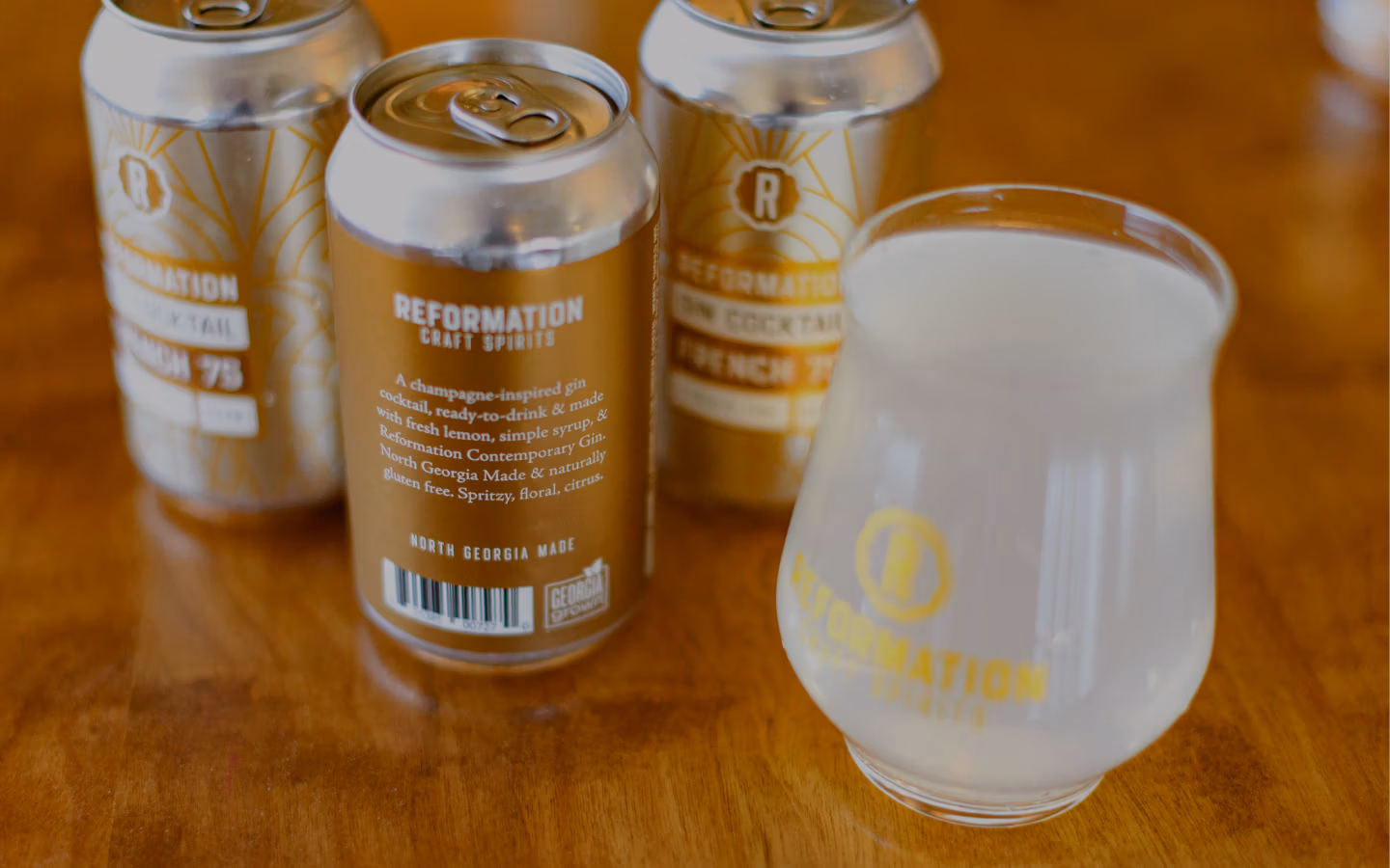 A champagne-inspired Vodka cocktail, ready-to-drink & made with fresh lemon, elderflower simple syrup, & Reformation Vodka. North Georgia Made & naturally gluten free. Spritzy, floral, citrus.